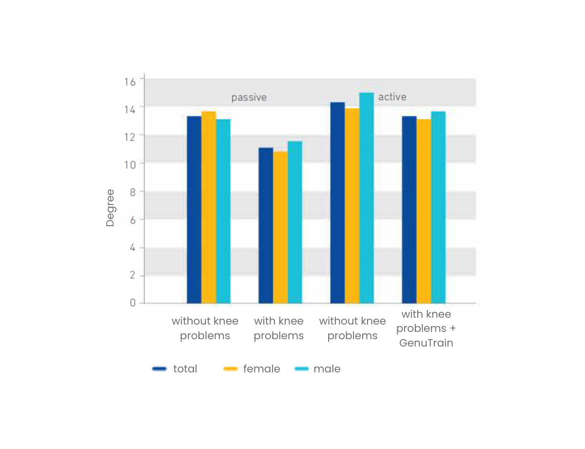 GenuTrain confers proprioception improvement in patients with polyarthritis, as determined through knee reproduction tests.